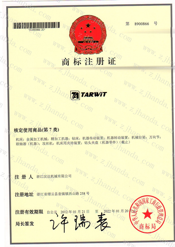 商標(biāo)局頒發(fā)TARWIT達(dá)人商標(biāo)注冊(cè)證