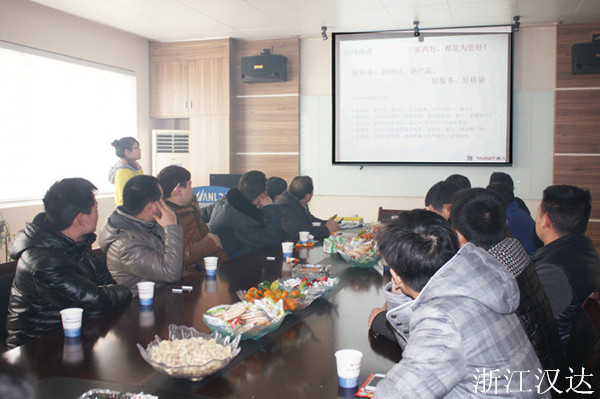 2014.02.09,是浙江漢達正式開工的好日子,恰遇新年的第一場雪。都說瑞雪兆豐年,公司的各位主管、員工及前來參加年度經(jīng)銷會議的經(jīng)銷商們,冒著大雪,紛紛地加入到點火儀式當(dāng)中,希望借著這瑞雪和煙花,沾一沾喜氣和好運,共同期盼著2014年,在浙江漢達領(lǐng)導(dǎo)層的帶領(lǐng)下,打開局面,事業(yè)更上一層樓。在儀式結(jié)束后,由營銷中心負責(zé)在四樓會議室,召開了年度經(jīng)營商會議。公司總經(jīng)理出席了會議,并作講話。營銷應(yīng)副總為經(jīng)營銷商解讀了新年里的銷售獎勵政策,并對上一年度的銷售精英進行了獎勵。技術(shù)副總應(yīng)偉達則就公司最新開發(fā)和主推的幾款產(chǎn)品,對其性能、技術(shù)參數(shù)等作了詳細的介紹。